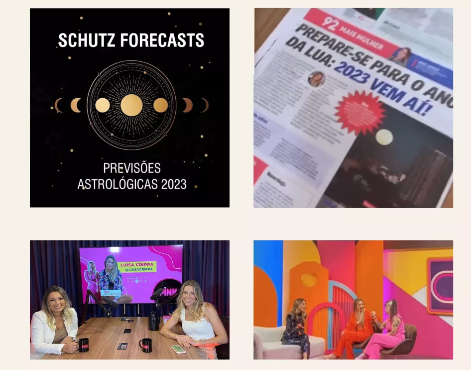 Fui convidada para programas de TV na Globo e outras emissoras, participei de podcasts especiais e levei a Astrologia da Nova Era até grandes empresas do Rio Grande do Sul e fora dele.